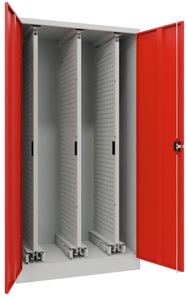 Vertikalauszugschrank, 3 Auszüge mit Lochplatten
