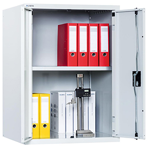 Aktenschrank, Aufsatzschrank mit Vollblechflügeltüren, BxTxH 717x725x1000 mm, 1 Verstellboden, RAL 7035, passend zu Schubladenschrank 36x36 E