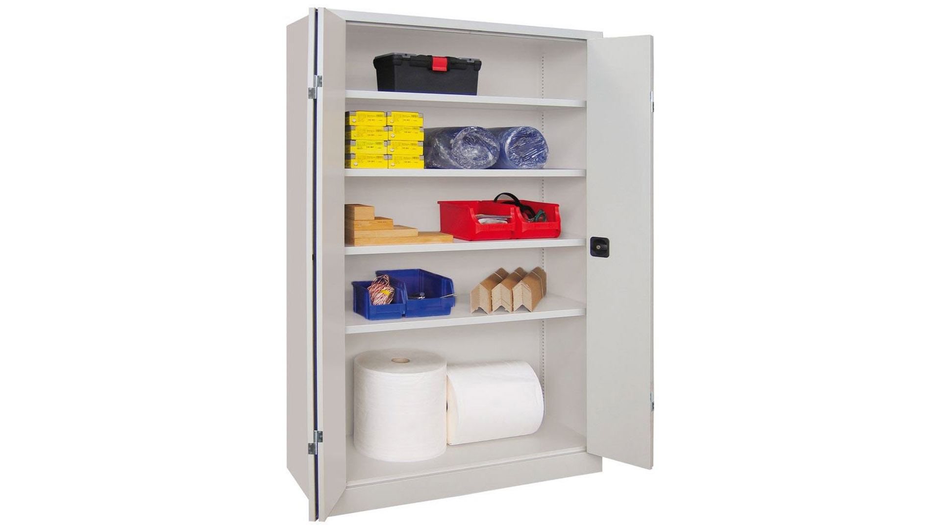 Aktenschrank, Falttürenschrank - 1.950x1.200x400 mm (HxBxT) - 4 Einlegeböden, pulverbeschichtet - Zylinderschloss - lichtgrau