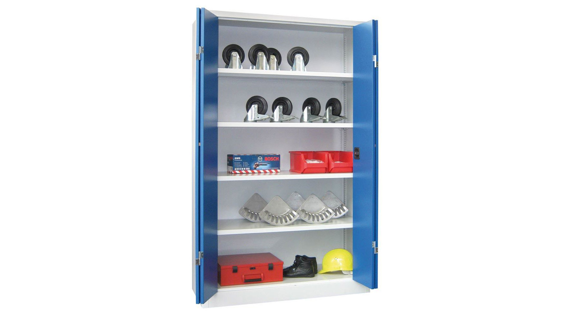 Falttürenschrank - 1.950x1.200x500 mm (HxBxT) - 4 Einlegeböden, pulverbeschichtet - Zylinderschloss - lichtgrau/enzianblau