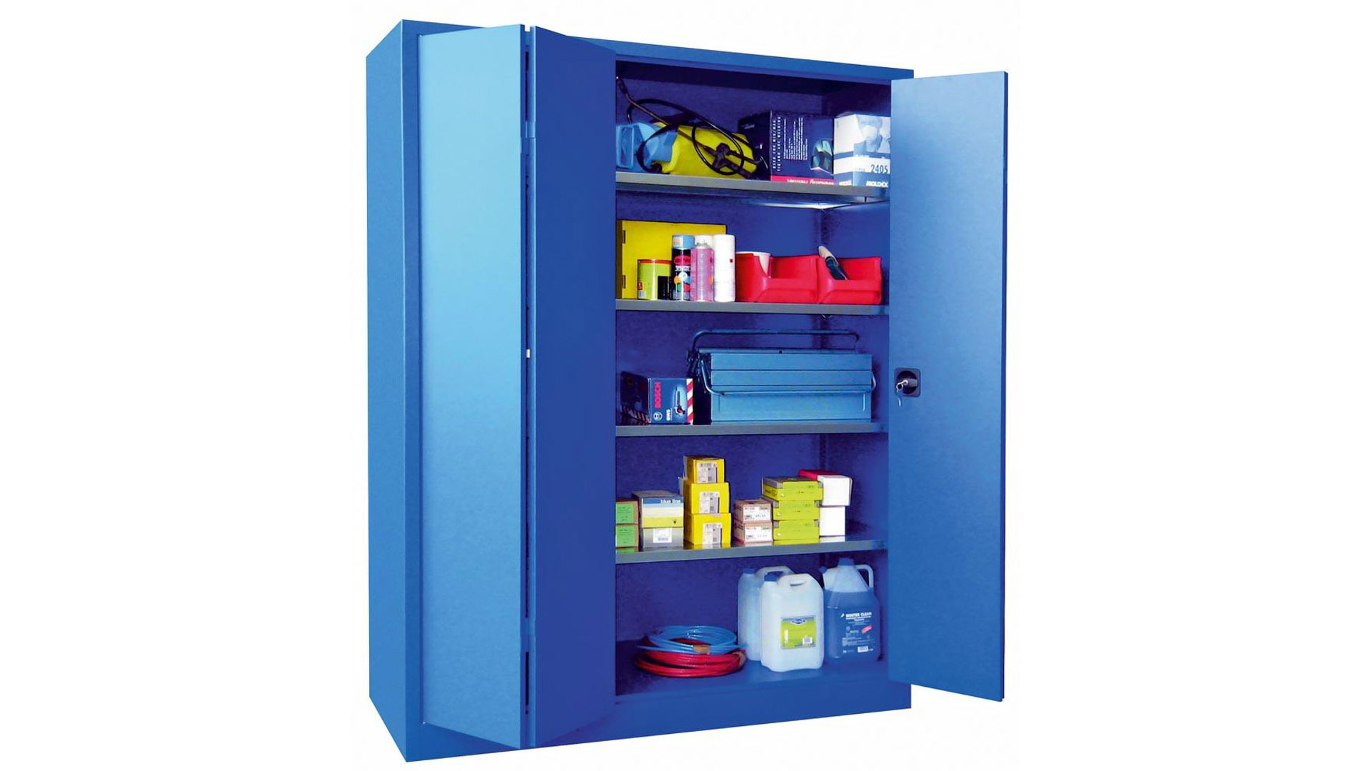 Falttürenschrank - 1.950x1.500x600 mm (HxBxT) - 4 Einlegeböden, verzinkt - Zylinderschloss - enzianblau