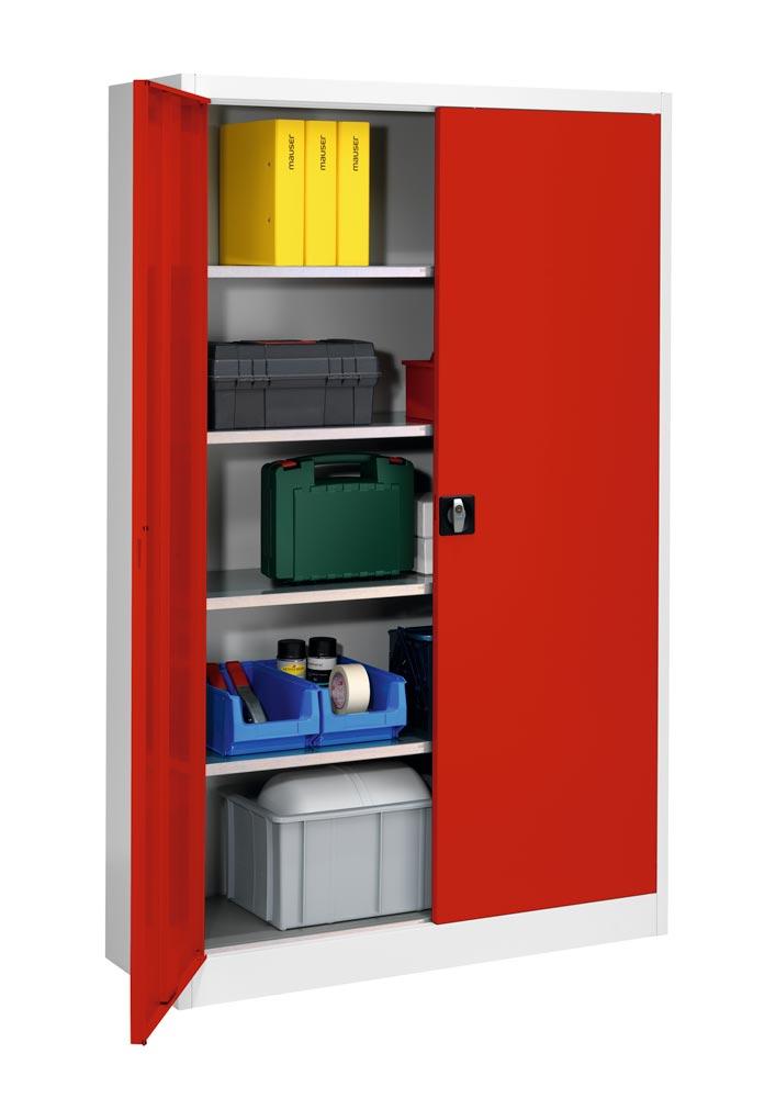 Flügeltürenschrank, 4 verzinkte Fachböden, Fachböden,BxTxH 1200x420x1950 mm, RAL7035/3000