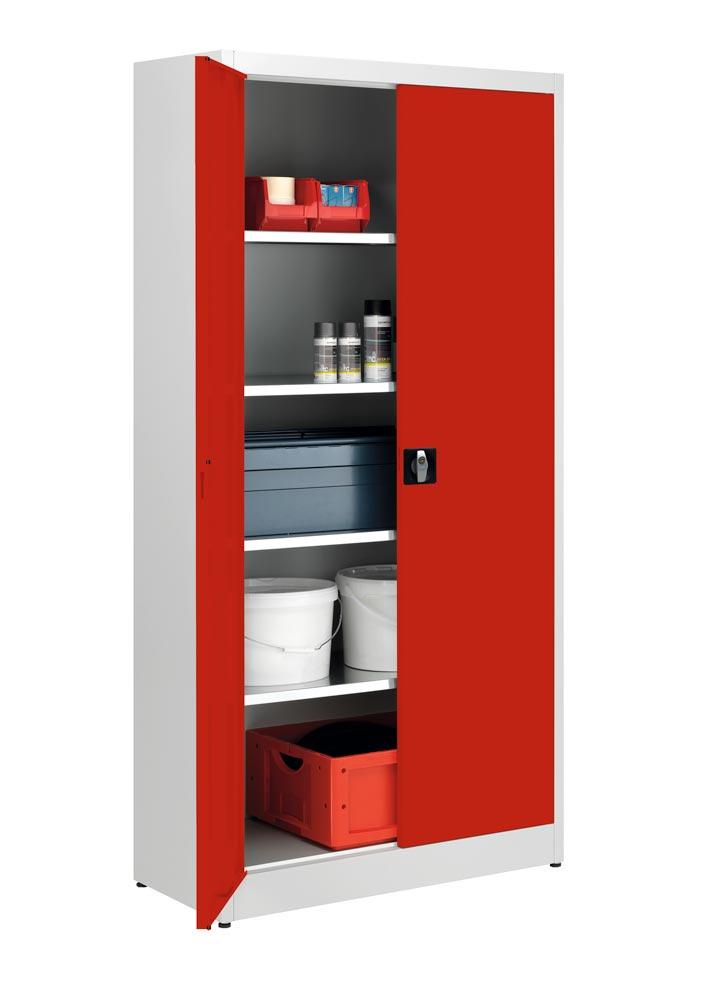 Flügeltürenschrank, 4 verzinkte Fachböden, Fachböden,BxTxH 950x420x1965 mm, RAL7035/3000