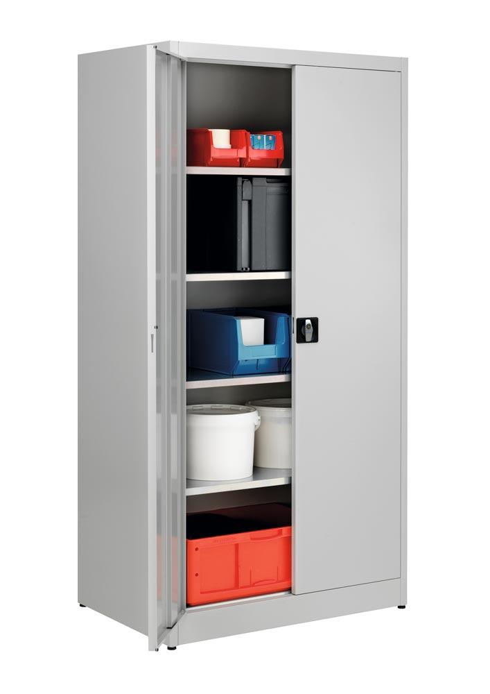 Flügeltürenschrank, 4 verzinkte Fachböden, Fachböden,BxTxH 950x600x1965 mm, RAL7035