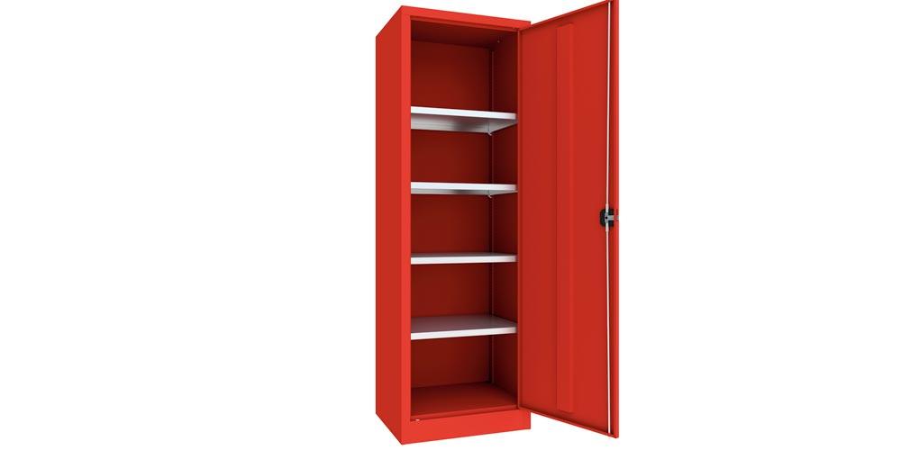 Flügeltürenschrank - Vollblechtür - 1.950x640x500 mm (HxBxT) - 4 Einlegeböden verzinkt - Zylinderschloss - feuerrot