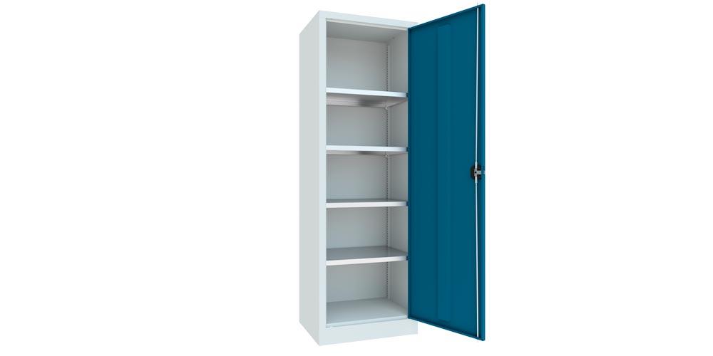 Flügeltürenschrank - Vollblechtür - 1.950x640x500 mm (HxBxT) - 4 Einlegeböden verzinkt - Zylinderschloss - lichtgrau/enzianblau