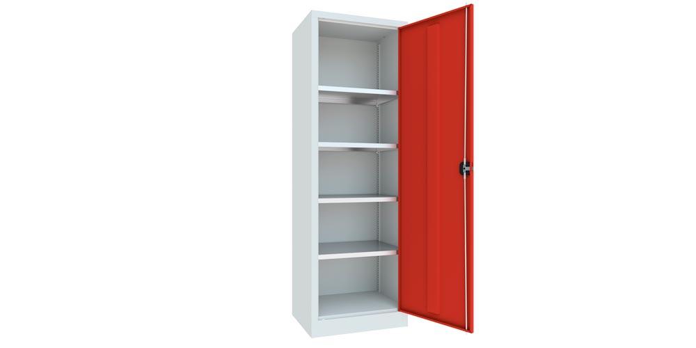 Flügeltürenschrank - Vollblechtür - 1.950x640x500 mm (HxBxT) - 4 Einlegeböden verzinkt - Zylinderschloss - lichtgrau/feuerrot