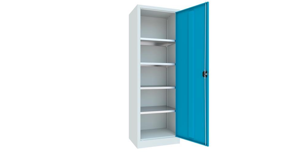 Flügeltürenschrank - Vollblechtür - 1.950x640x500 mm (HxBxT) - 4 Einlegeböden verzinkt - Zylinderschloss - lichtgrau/himmelblau