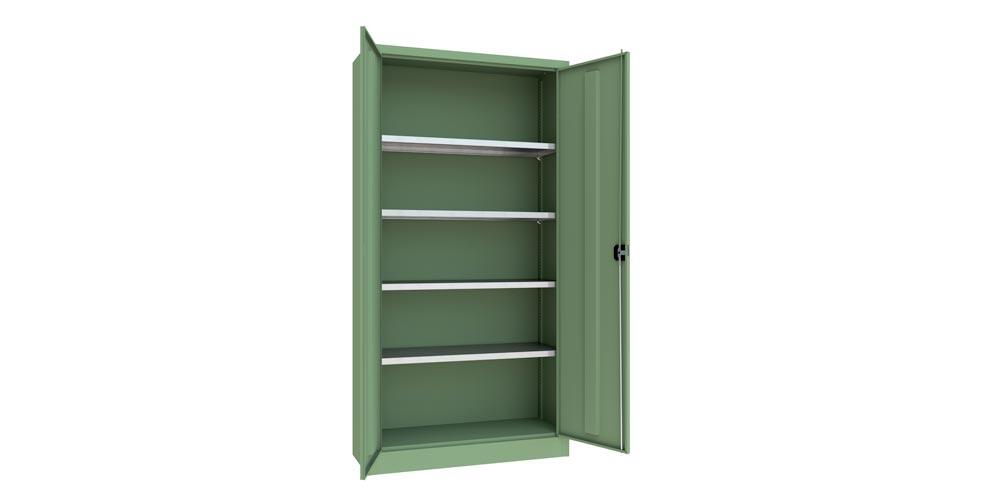 Flügeltürenschrank - Vollblechtüren - 1.950x1.000x400 mm (HxBxT) - 4 Einlegeböden verzinkt - Zylinderschloss - resedagrün