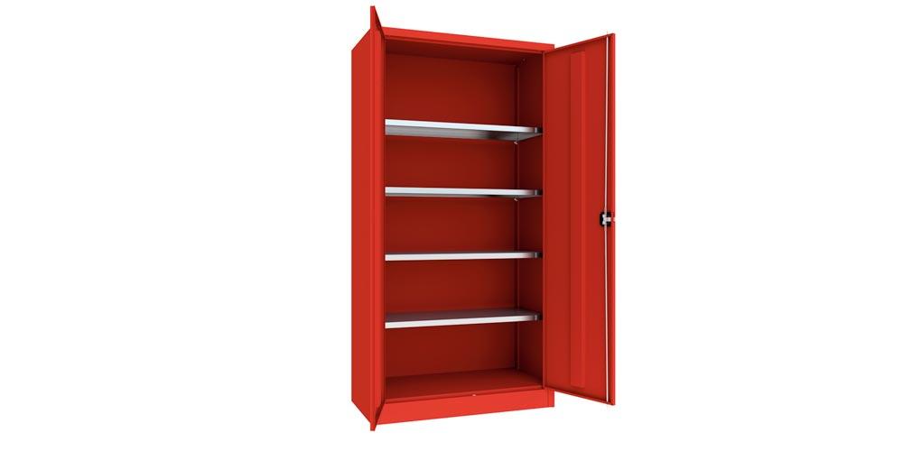 Flügeltürenschrank - Vollblechtüren - 1.950x1.000x500 mm (HxBxT) - 4 Einlegeböden verzinkt - Zylinderschloss - feuerrot