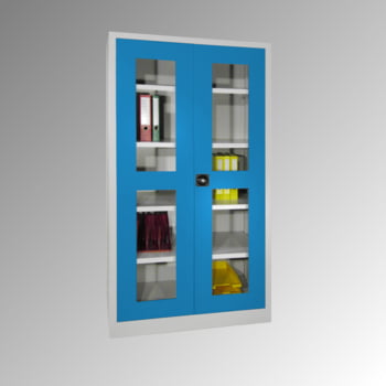 Flügeltürenschrank - Vollblechtüren - 1.950x1.000x600 mm (HxBxT) - 4 Einlegeböden verzinkt - Zylinderschloss - enzianblau