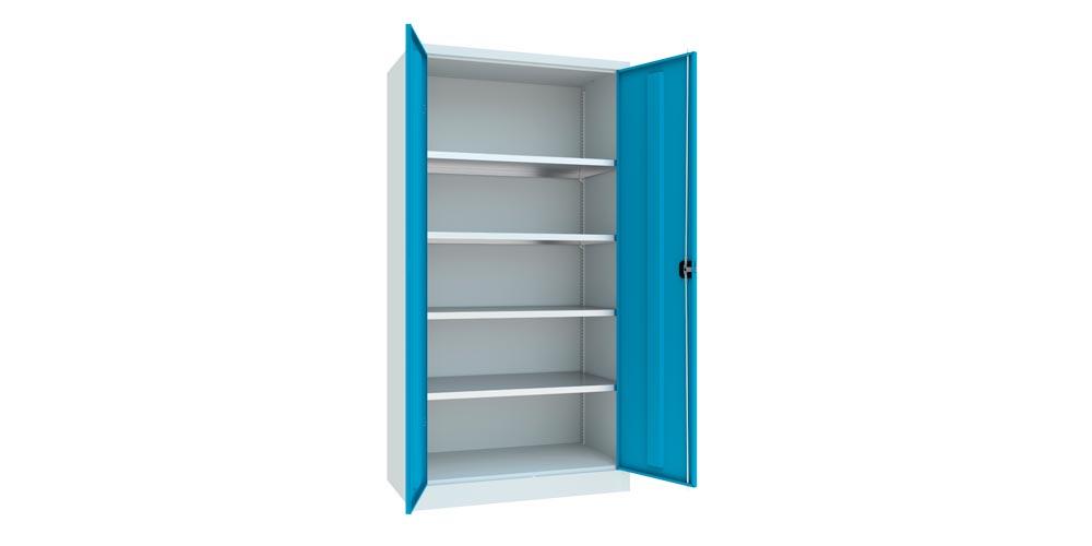 Flügeltürenschrank - Vollblechtüren - 1.950x1.000x600 mm (HxBxT) - 4 Einlegeböden verzinkt - Zylinderschloss - lichtgrau/himmelblau