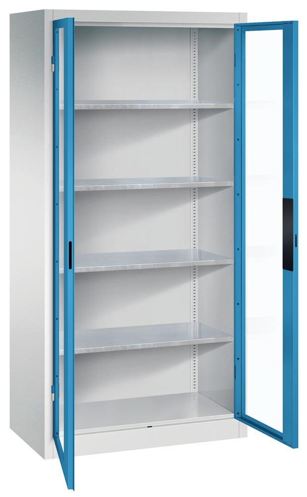 Großraum-Werkzeugschrank mit Sichtfenstertüren, 4 Verstellböden, BxTxH 930x500x1950 mm, RAL 7035/5012