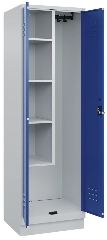 Putzmittelschrank Premium, BxTxH 600x500x1950 mm, 2 Abteile a 300 mm, mit Sockel, Drehriegel, RAL 7035/5010