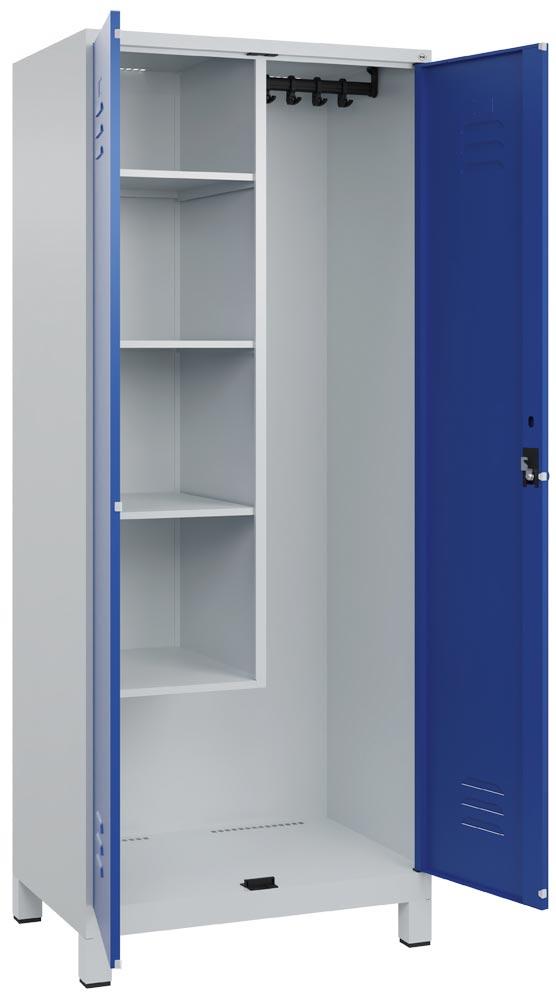 Putzmittelschrank Premium, BxTxH 800x500x1950 mm, 2 Abteile a 400 mm, mit Füßen, Drehriegel, RAL 7035/5010