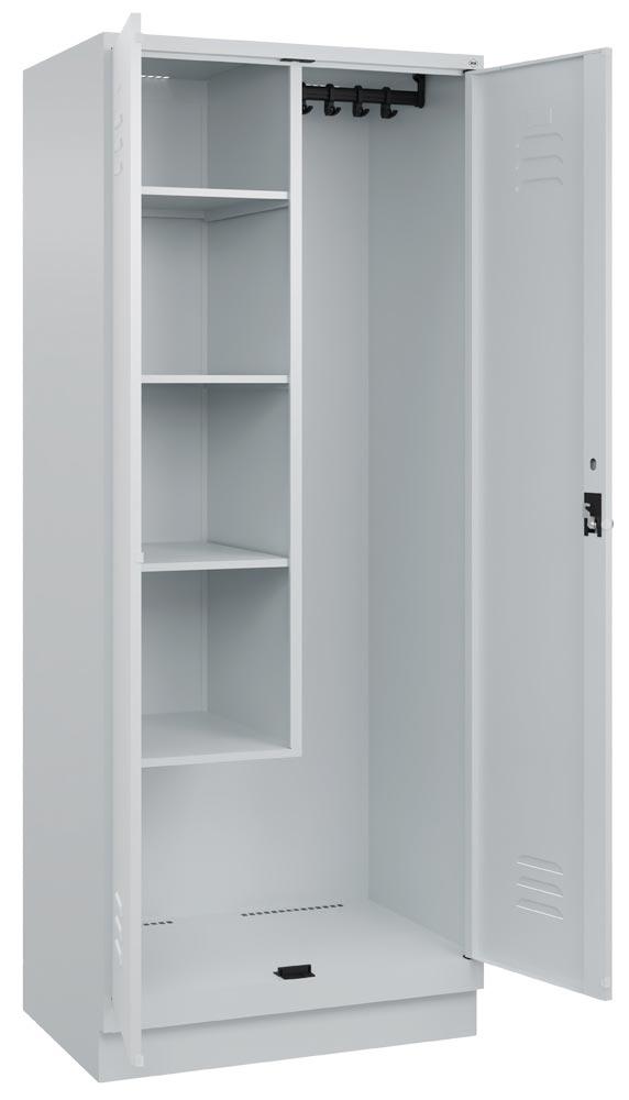 Putzmittelschrank Premium, BxTxH 800x500x1950 mm, 2 Abteile a 400 mm, mit Sockel, Drehriegel, RAL 7035