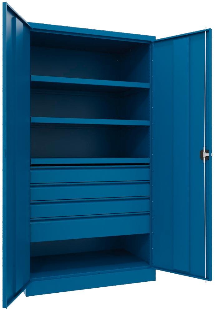 Schwerlastschrank, Vollblechtüren, ohne Trennwand, 3 Böden, 200 kg Traglast, Schubl.: 3x125, 1x175 mm, BxTxH 1040x630x1950 mm, RAL 5010