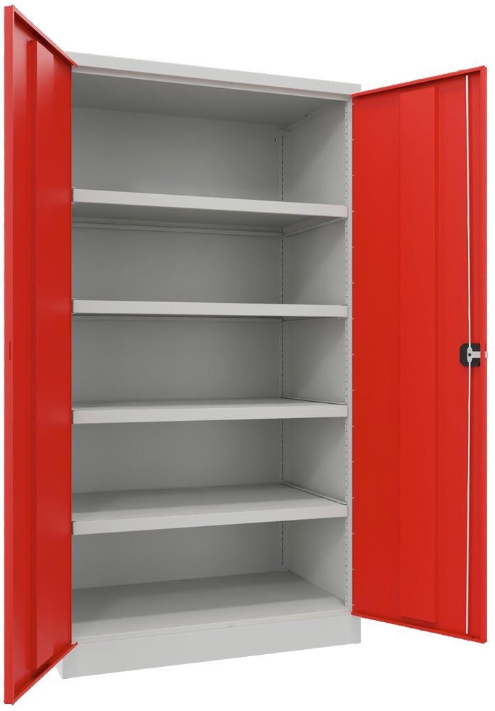 Schwerlastschrank, Vollblechtüren, ohne Trennwand, 4 Böden, 120 kg Traglast, BxTxH 1040x 630x1950 mm, RAL 7035/3000