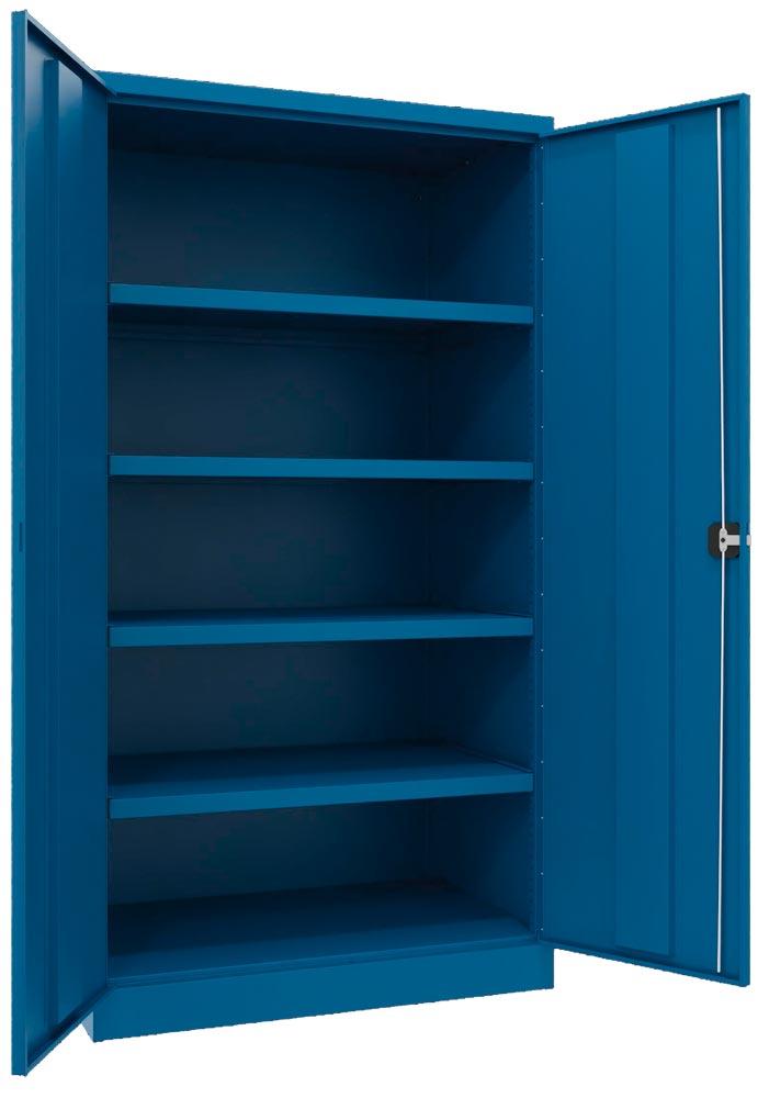 Schwerlastschrank, Vollblechtüren, ohne Trennwand, 4 Böden, 200 kg Traglast, BxTxH 1040x630x1950 mm, RAL 5010
