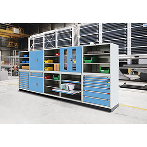 ∙ Modularer Aufbau, problemlos erweiterbar ∙ Schrankgehäuse 2-teilig fest verschraubt ∙ Hohe Belastbarkeit bis 4000 kg bei gleichmäßig verteilter Flächenlast ∙ Hohe Mobilität durch integrierten Hubwagensockel ∙ Farbe Korpus / Front RAL 7035 lichtgrau / RAL 5012 lichtblau