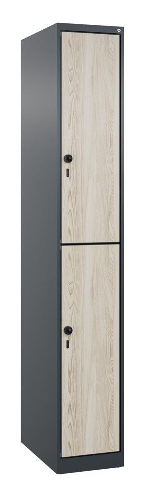 Fächerschrank, doppelstöckig, bodenstehend, 1x2 Fächer, Abt.B 300 mm, BxTxH 300x500x1850 mm, HPL-Dekorfront, RAL 7016/Dekor Sen Esche