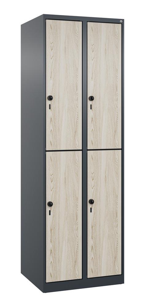 Fächerschrank, doppelstöckig, bodenstehend, 2x2 Fächer, Abt.B 300 mm, BxTxH 600x500x1850 mm, HPL-Dekorfront, RAL 7016/Dekor Sen Esche
