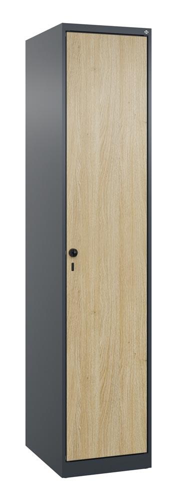 Garderobenschrank, bodenstehend, 1 Abt., Abt.B 400 mm, BxTxH 400x500x1850 mm, HPL-Dekorfront, RAL 7016/Dekor Eiche Sereno