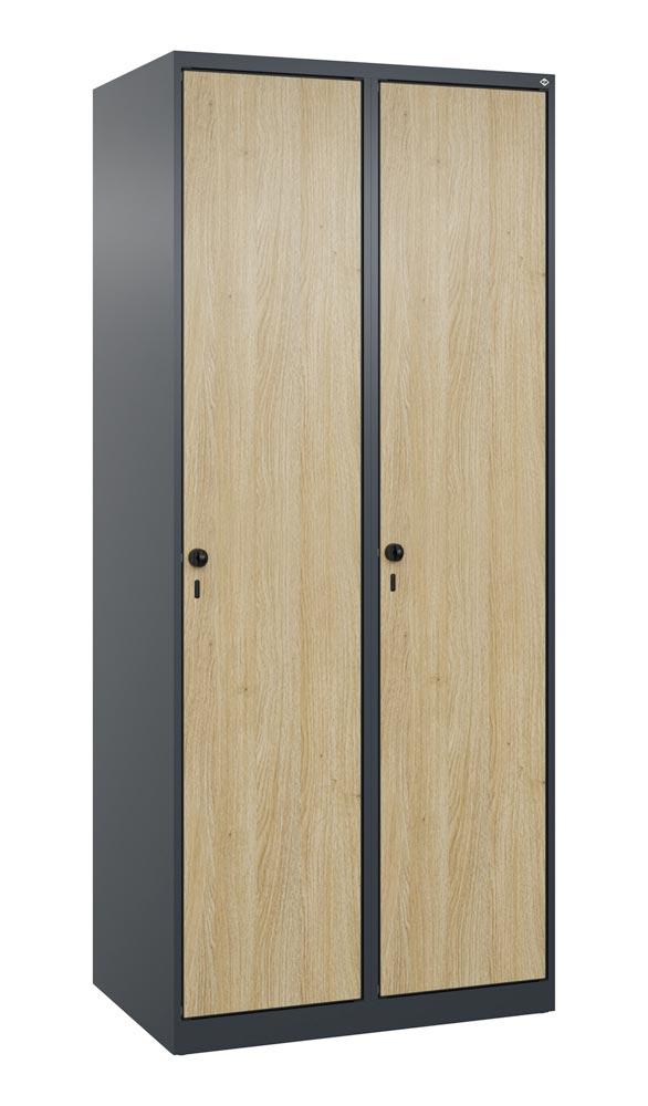 Garderobenschrank, bodenstehend, 2 Abt., Abt.B 400 mm, BxTxH 800x500x1850 mm, HPL-Dekorfront, RAL 7016/Dekor Eiche-Sereno