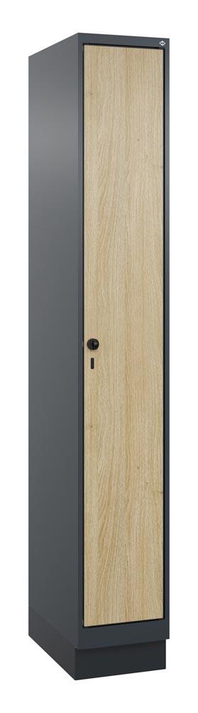 Garderobenschrank, Sockel, 1 Abt., Abt.B 300 mm, BxTxH 300x500x1950 mm, HPL-Dekorfront, RAL 7016/Dekor Eiche Sereno