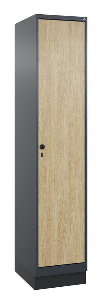 Garderobenschrank, Sockel, 1 Abt., Abt.B 400 mm, BxTxH 400x500x1950 mm, HPL-Dekorfront, RAL 7016/Dekor Eiche Sereno