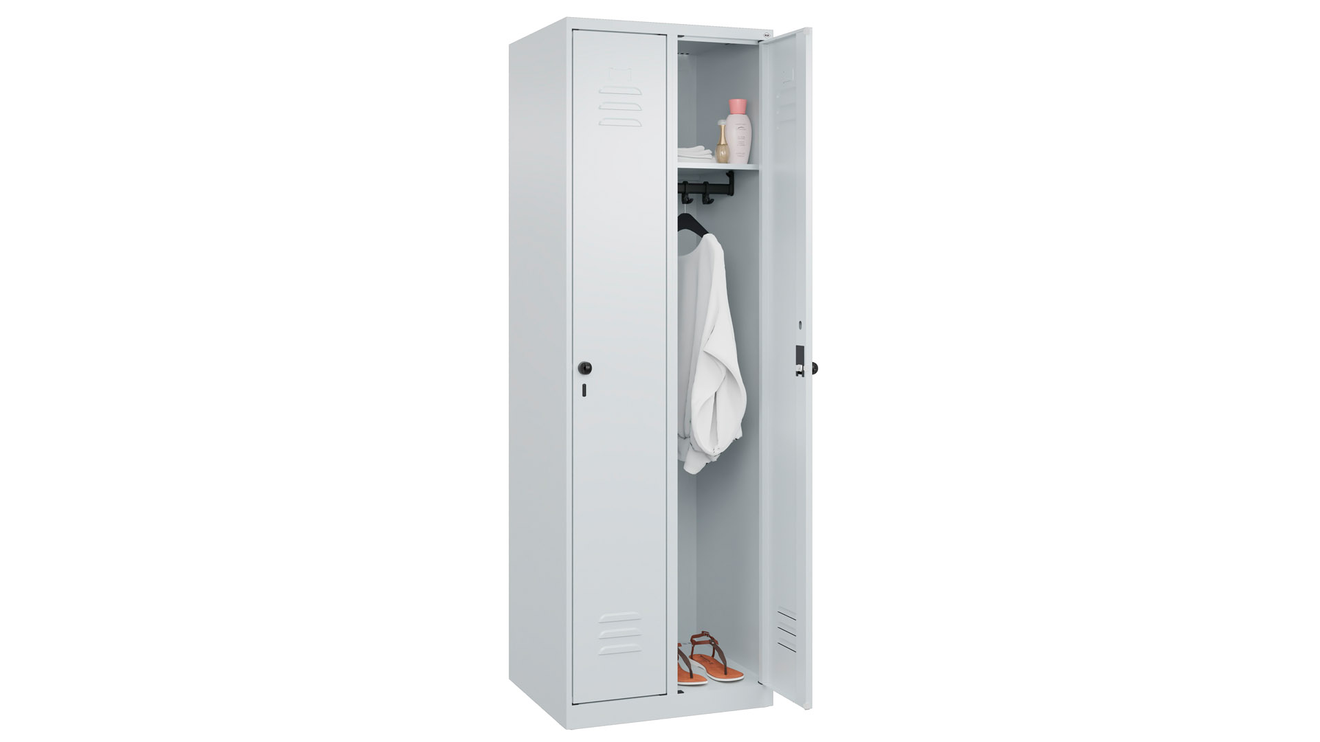Spind - Garderobenschrank, Breite 60 cm, Höhe 185 cm, Tiefe 50 cm, 2 Abteile