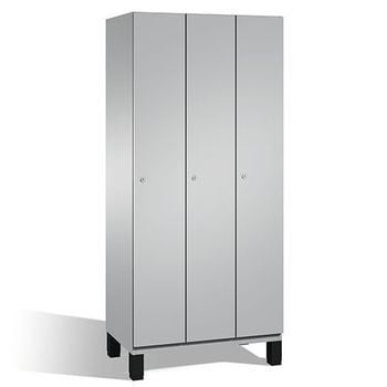 Spind, Spindschrank auf Füßen, Selbstbelüftung, 3 Fächer (1 x 3) je 300 mm, Türfarbe enzianblau, 1.980 x 900 x 525 mm (HxBxT), 3 Abteile