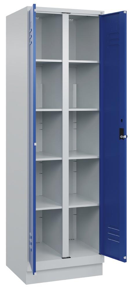 Spind, Kombischrank Premium, BxTxH 600x500x1950 mm, 2 Abteile a 300 mm, mit Sockel, Drehriegel, RAL 7035/5010