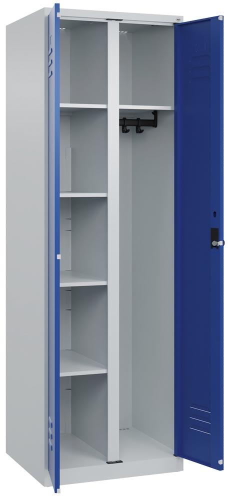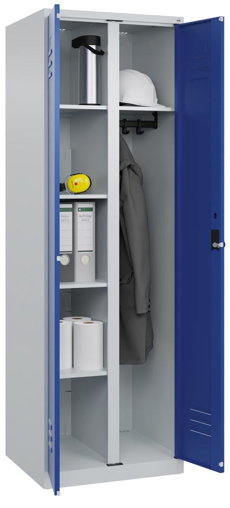 Wäscheschrank, Garderobenschrank Premium, BxTxH 600x500x1850 mm, 2 Abteile a 300 mm, Bodenstehend, Drehriegel, RAL 7035/5010