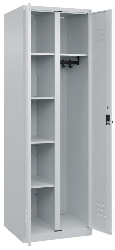 Wäscheschrank, Garderobenschrank Premium, BxTxH 600x500x1850 mm, 2 Abteile a 300 mm, Bodenstehend, Drehriegel, RAL 7035