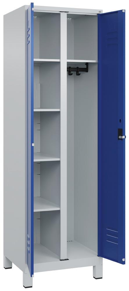 Wäscheschrank, Garderobenschrank Premium, BxTxH 600x500x1950 mm, 2 Abteile a 300 mm, mit Füßen, Drehriegel, RAL 7035/5010