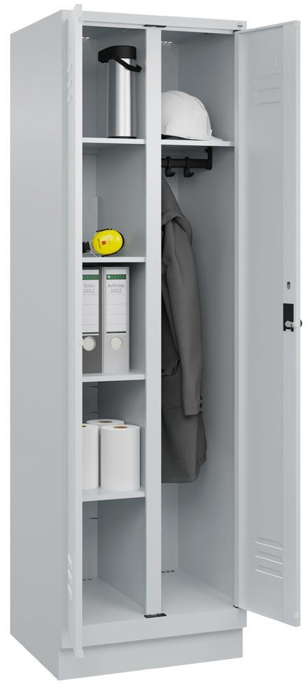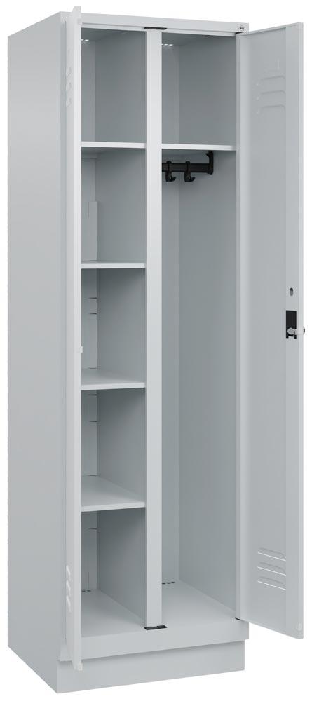 Wäscheschrank, Garderobenschrank Premium, BxTxH 600x500x1950 mm, 2 Abteile a 300 mm, mit Sockel, Drehriegel, RAL 7035