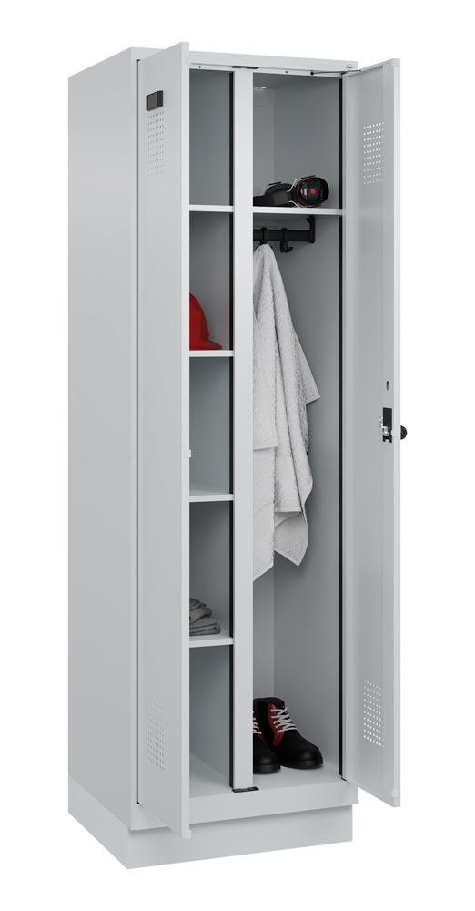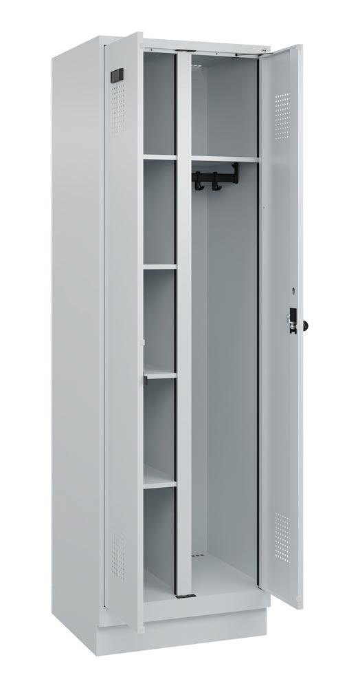 Wäscheschrank, Garderobenschrank Premium Plus, BxTxH 600x500x1950 mm, 2 Abteile a 300 mm, mit Sockel, Drehriegel, RAL 7035