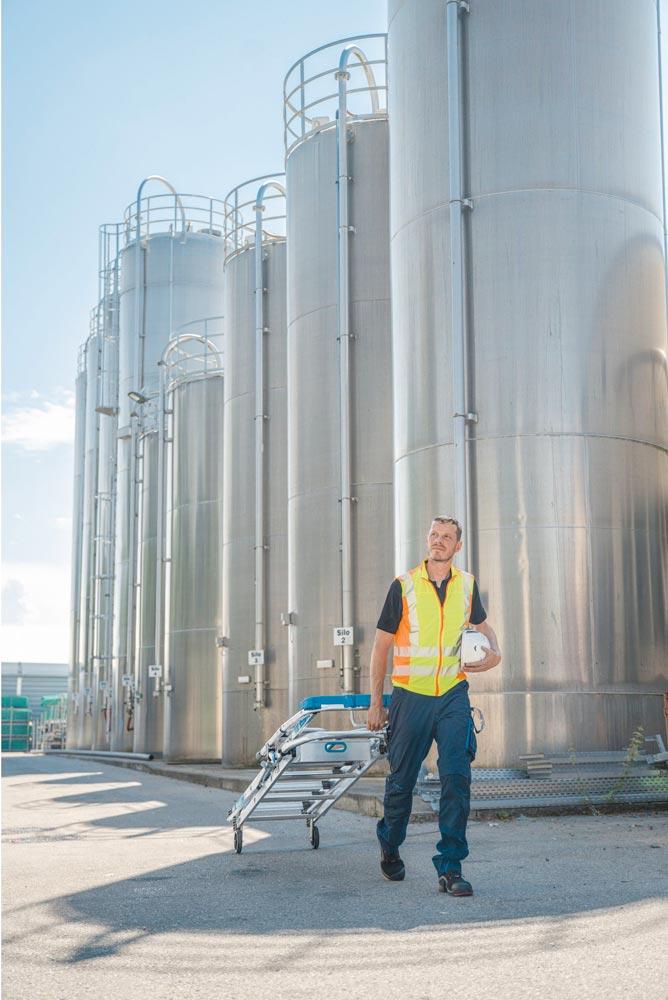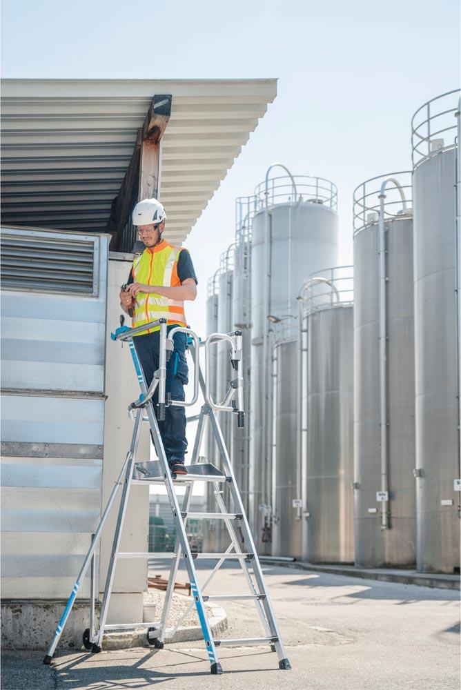 Plattformleiter mit Auslegern, Plattformhöhe 1,20 m, Arbeitshöhe max. 3,20 m, Sprossenanzahl 5, Plattform 400x550 mm, Gewicht 24,9 kg