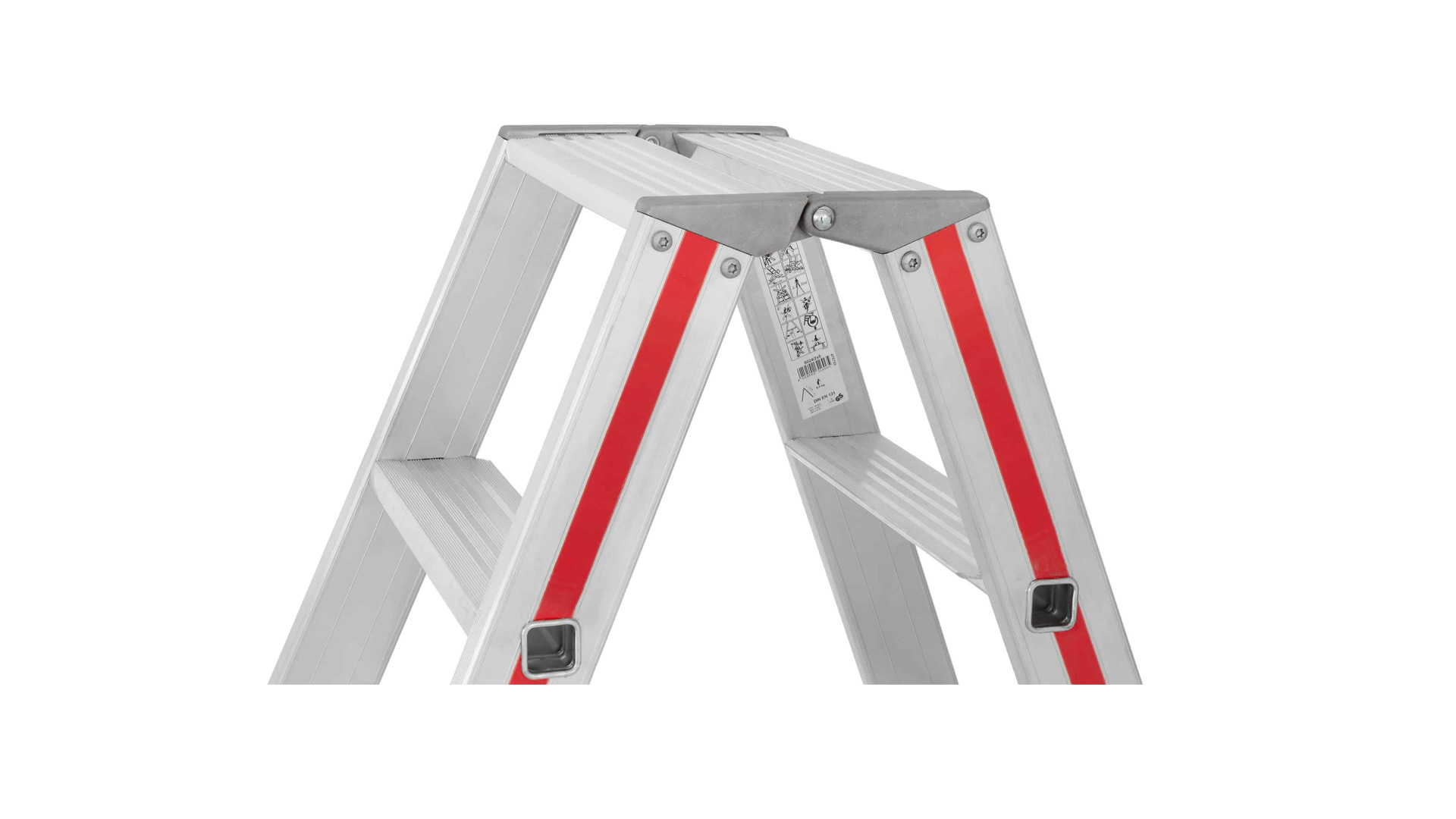 Stufenstehleiter R13 beidseitig begehbar inkl. Spreizsicherung Höhe 950 mm, 2x4 Stufen, Gewicht 6,0 kg