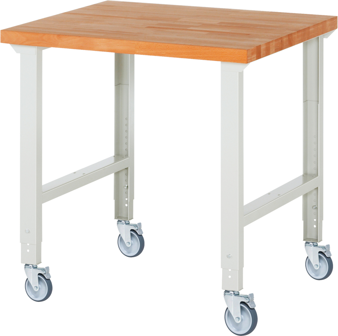 Fahrbare Werkbank Modell 7000 schwarz, BxTxH 1000x900x950-1000 mm, Buche-Massiv Arbeitsplatte 40 mm