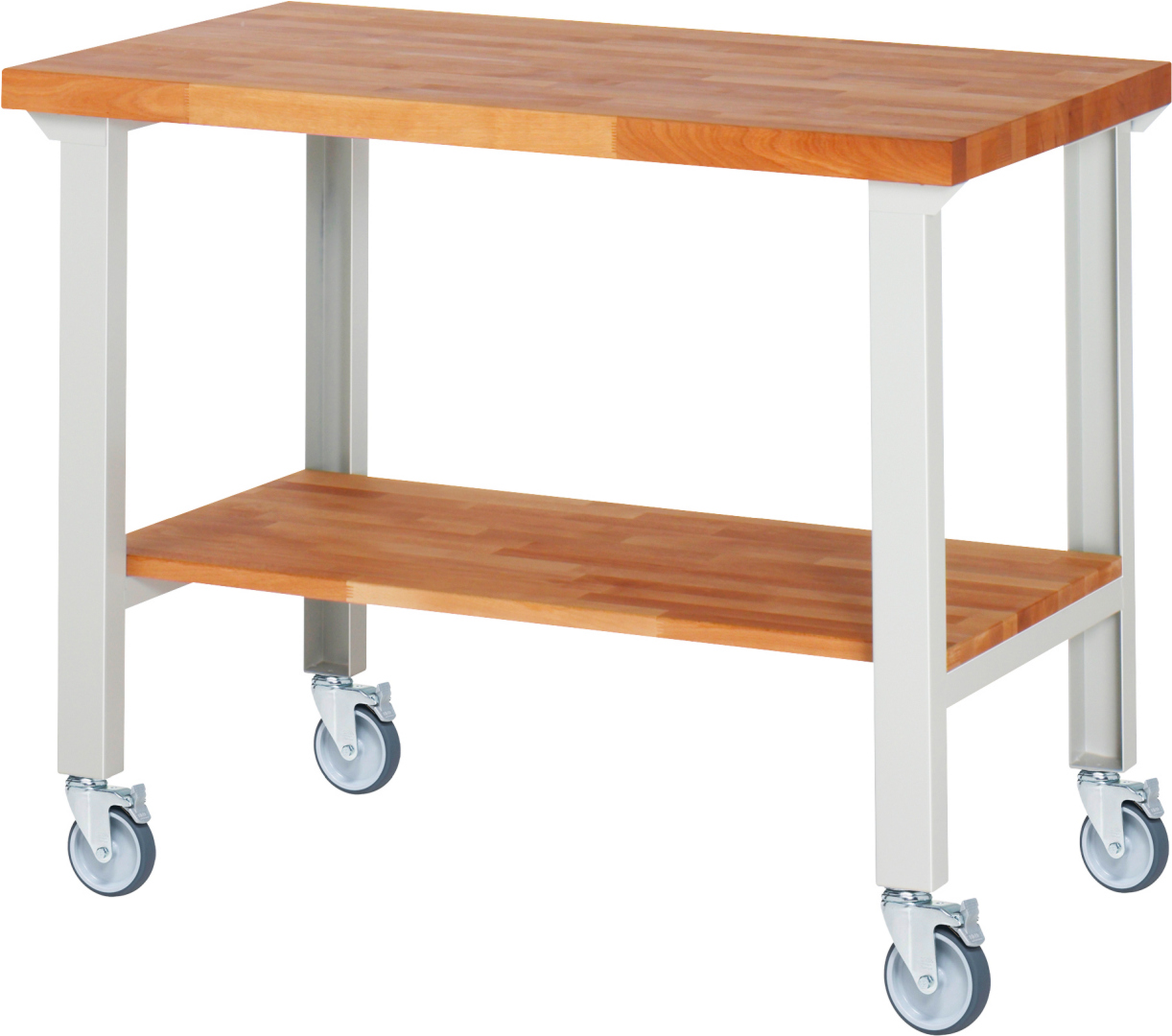Fahrbare Werkbank Modell 7000 schwarz, BxTxH 1250x700x1000 mm, Buche-Massiv Arbeitsplatte 40 mm