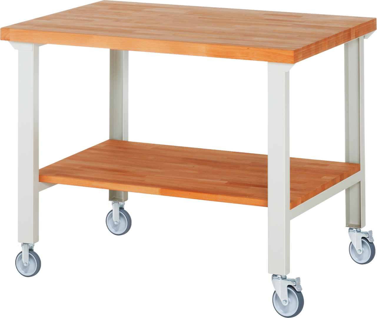 Fahrbare Werkbank Modell 7000 schwarz, BxTxH 1250x900x1000 mm, Buche-Massiv Arbeitsplatte 40 mm