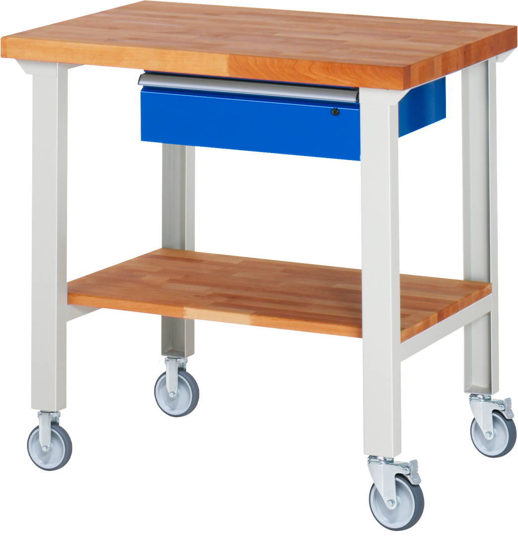 Fahrbare Werkbank Modell 7001 schwarz, BxTxH 1000x700x1000 mm, Buche-Massiv Arbeitsplatte 40 mm, 1 Schublade mit Auszug 90 %