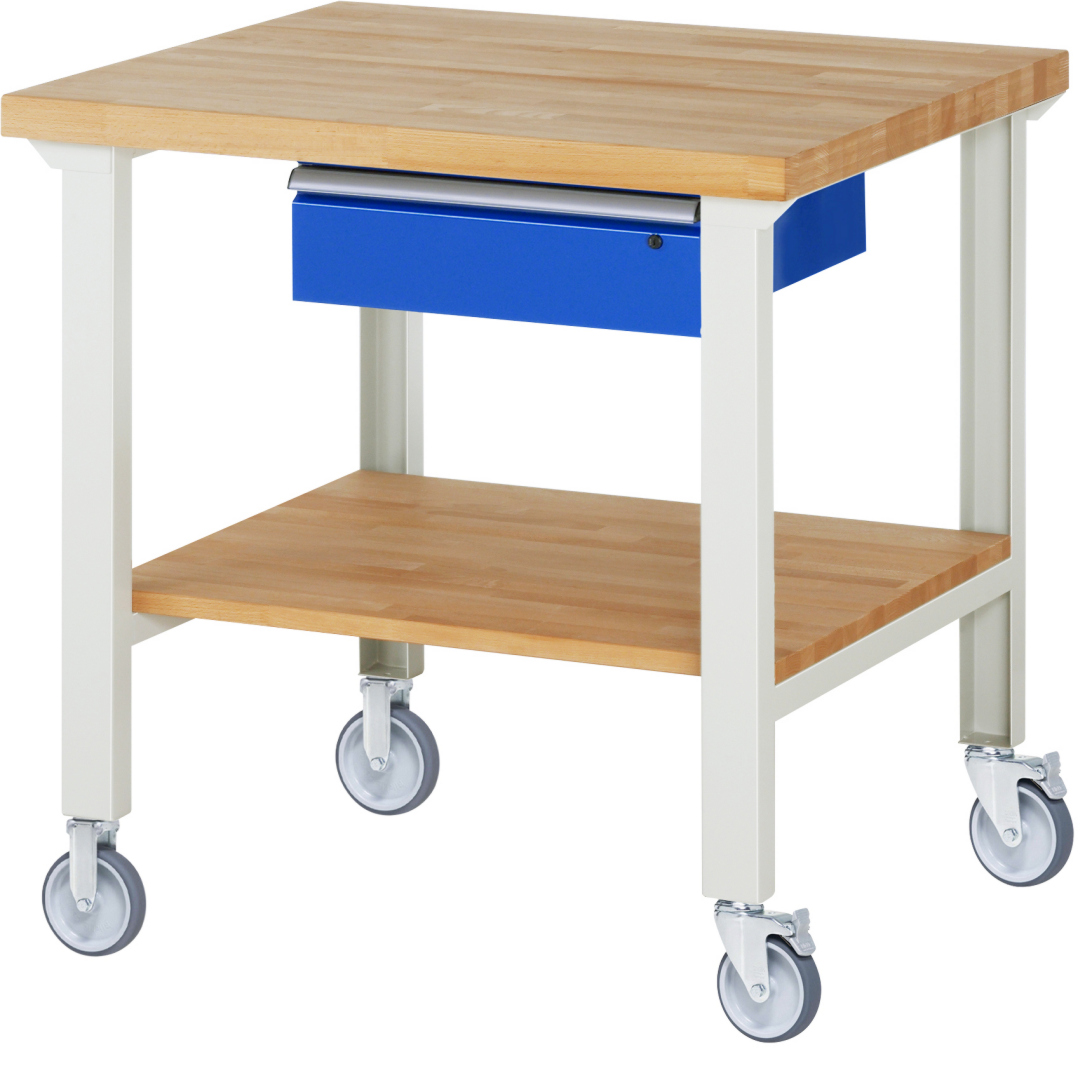 Fahrbare Werkbank Modell 7001 schwarz, BxTxH 1000x900x1000 mm, Buche-Massiv Arbeitsplatte 40 mm, 1 Schublade mit Auszug 90 %