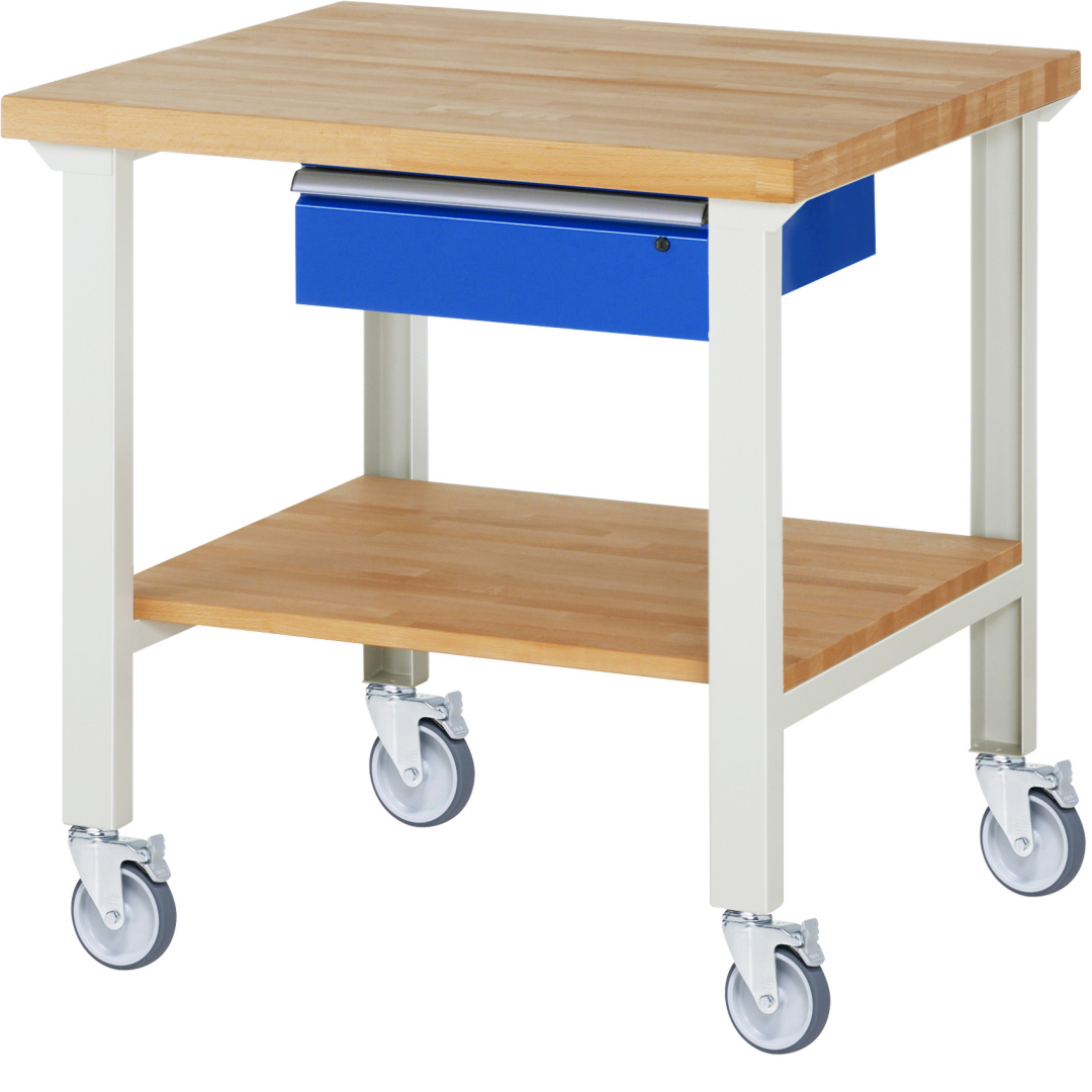 Fahrbare Werkbank Modell 7001 schwarz, BxTxH 1000x900x1000 mm, Buche-Massiv Arbeitsplatte 40 mm, 1 Schublade mit Auszug 90 %