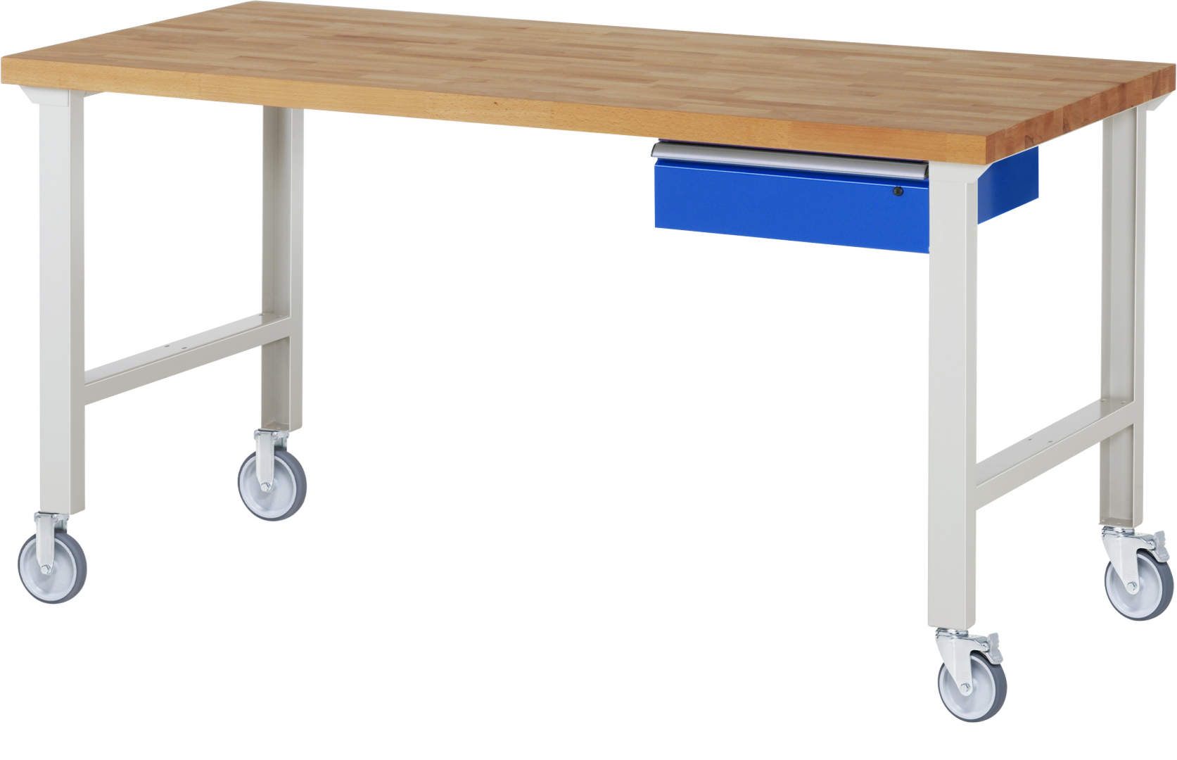 Fahrbare Werkbank Modell 7001 schwarz, BxTxH 2000x900x1000 mm, Buche-Massiv Arbeitsplatte 40 mm, 1 Schublade mit Auszug 90 %