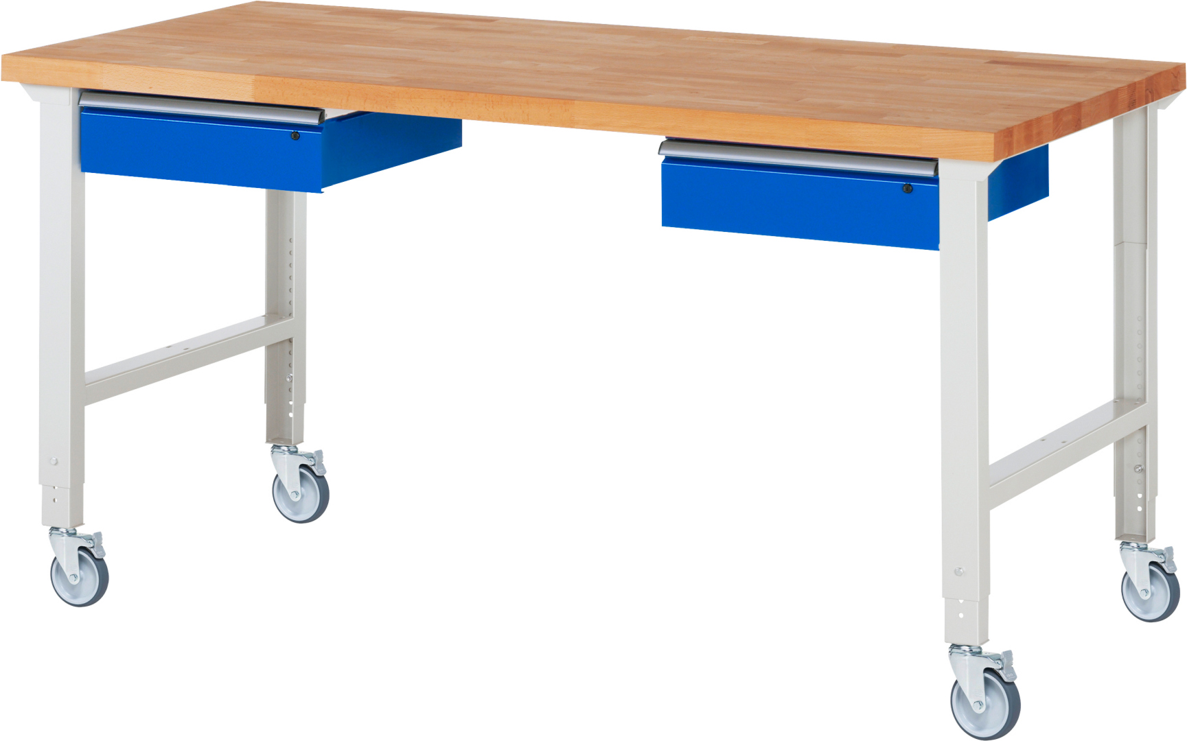 Fahrbare Werkbank Modell 7002 schwarz, BxTxH 2000x900x950-1000 mm, Buche-Massiv Arbeitsplatte 40 mm, 2 Schubladen mit Auszug 90 %