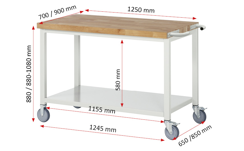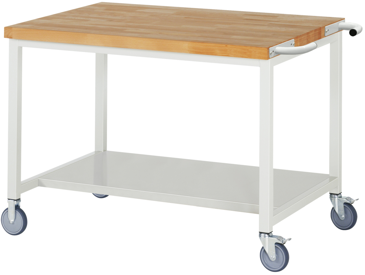 Fahrbare Werkbank Modell 8000 schwarz, BxTxH 1250x900x880 mm, Buche-Massiv Arbeitsplatte 40 mm