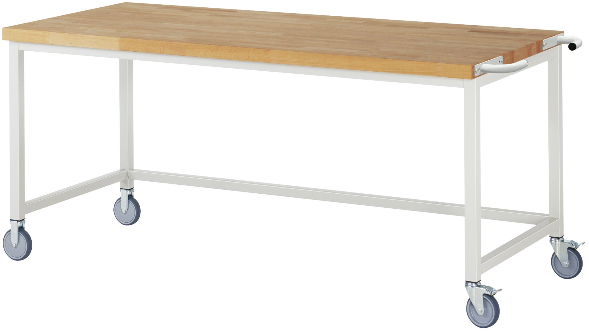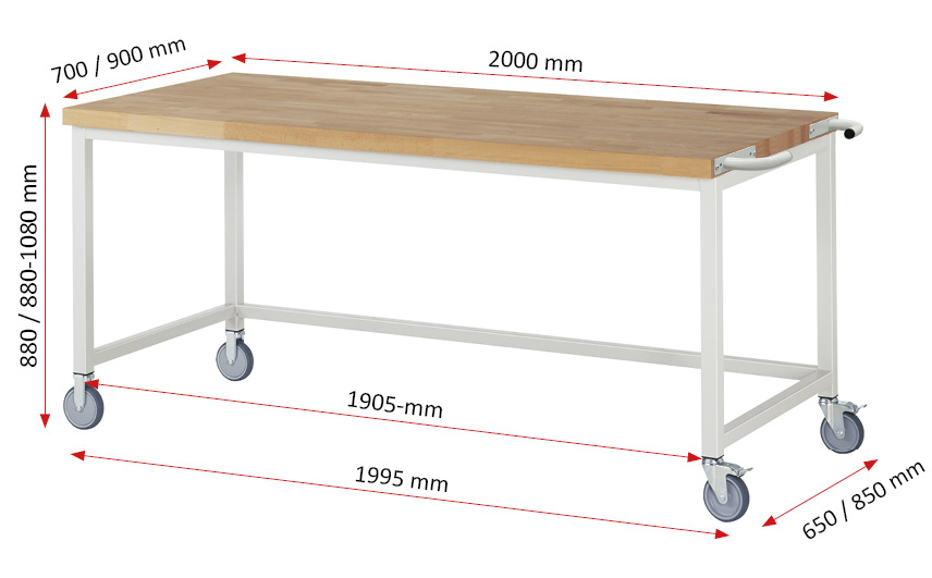 Fahrbare Werkbank Modell 8000 schwarz, BxTxH 2000x900x880-1080 mm, Buche-Massiv Arbeitsplatte 40 mm